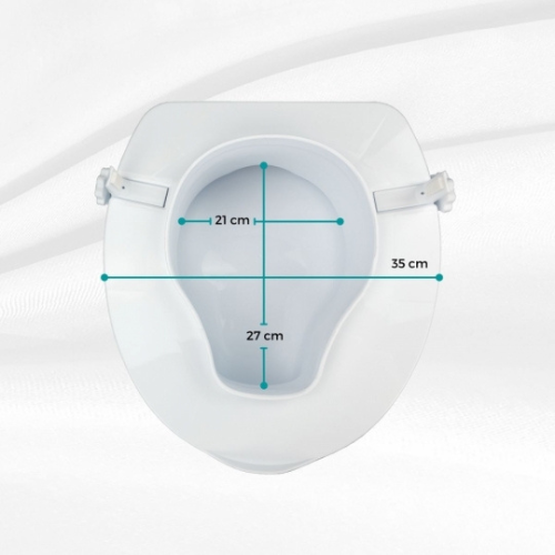 Elevador de sanita com 14cm de altura, adaptável a sanitas ovais. Uma solução muito prática e segura para população geriátrica, para pessoas com mobilidade reduzida/condicionada e/ou que necessitem de apoio adicional na ida à casa de banho.