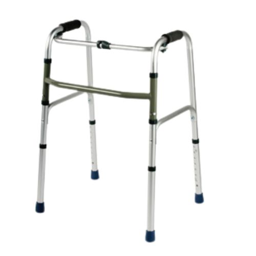 Andarilho articulado de dois apoios, em alumínio. A ajuda ideal para uma marcha segura, com apoio adicional no levantar. Modelo Pórtico.