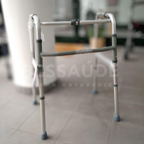 Andarilho de alumínio, não dobrável, regulável em altura.