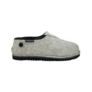 WinterWool. Pantufa com forro interior 100% lã natural, máximo conforto. O fecho com clip no calcanhar permite a melhor adaptação ao utilizador e facilita o calçar, permitindo usar como sapato ou como chinelo.