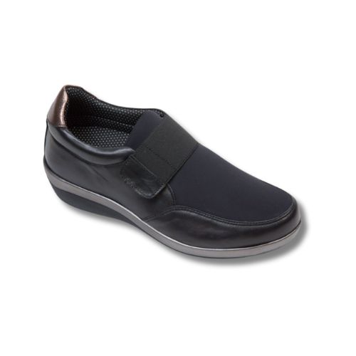 Sapato de senhora em pele e lycra, com tira elástica ajustável, modelo Maria.
